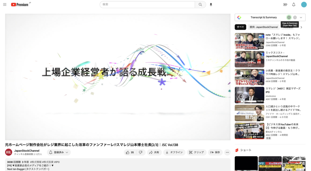 Glarityはchrome拡張でyoutubeをみると下記のように要約が出ます。