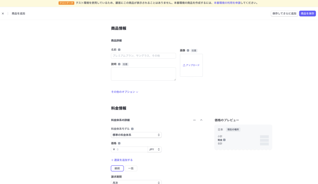 stripeの商品登録