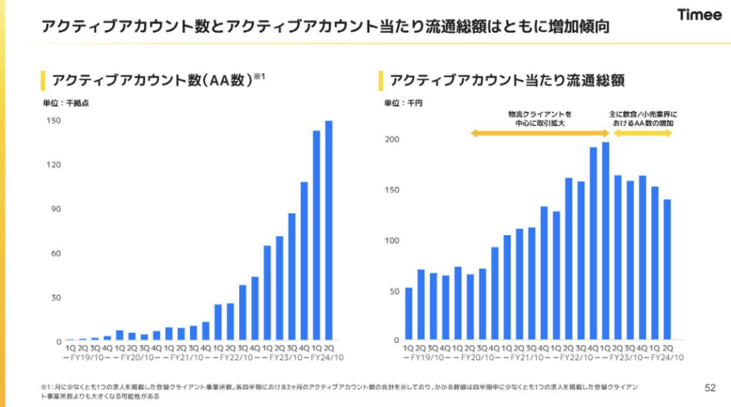2023年10月地点でも15万の事業所を開拓し、アクティブな拠点が10万ほどで66%ほどのアクティブ率になっている。だいたいこれくらいのアクティブ率で安定すると思われる。