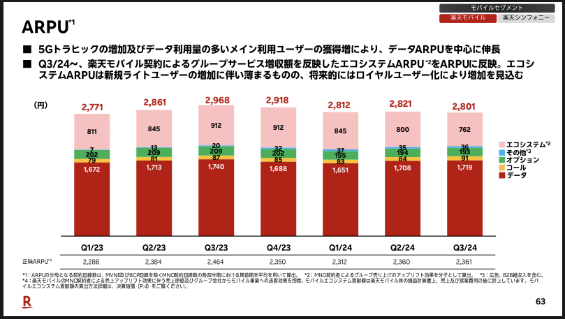 ARPUは伸びていないのと今後も安さで売っている性質から伸びにくいと考えられる。そもそも携帯業界自体が競争が激しくなっており、伸び悩んでいる。